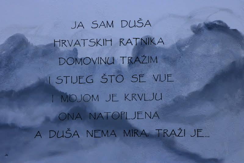 Poštovani hrvacki branitelji, ma čiji sinovi bili, ne razdvajajte se, ostanite zajedno, cili. Sinovi hrvackih branitelja, zar su se vaši očevi za ovakvu Hrvacku borili, šta čekate? Dokažimo svima koji su protiv naše domovine, koja je na tri dila razdvojena, da smo za dom spremni, prijatelji mili.