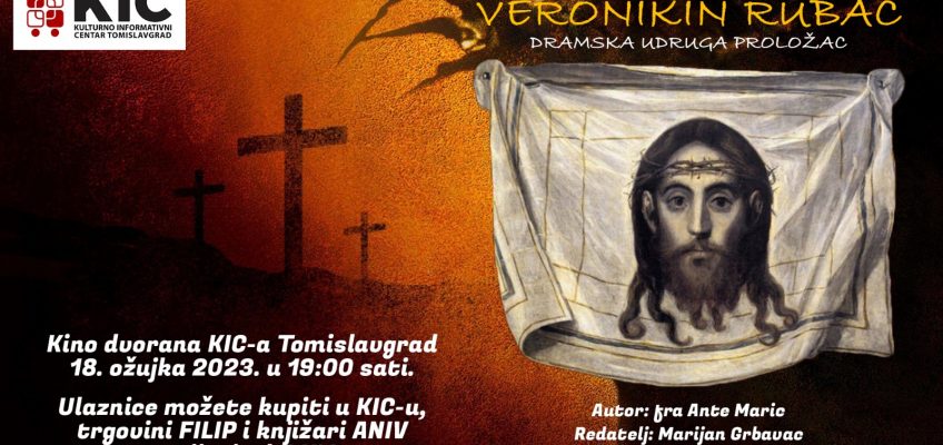 U Korizmi smo za vas pripremili višestruko nagrađivanu kazališnu predstavu ”Veronikin rubac” u subotu, 18. ožujka 2023., u 19:00 sati u kino dvorani KIC-a u Tomislavgradu.