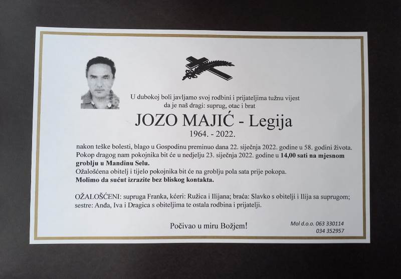 Nakon duge i teške bolesti u svome obiteljskome domu u Mandinu Selu jutros je preminuo Jozo Majić (1964.).