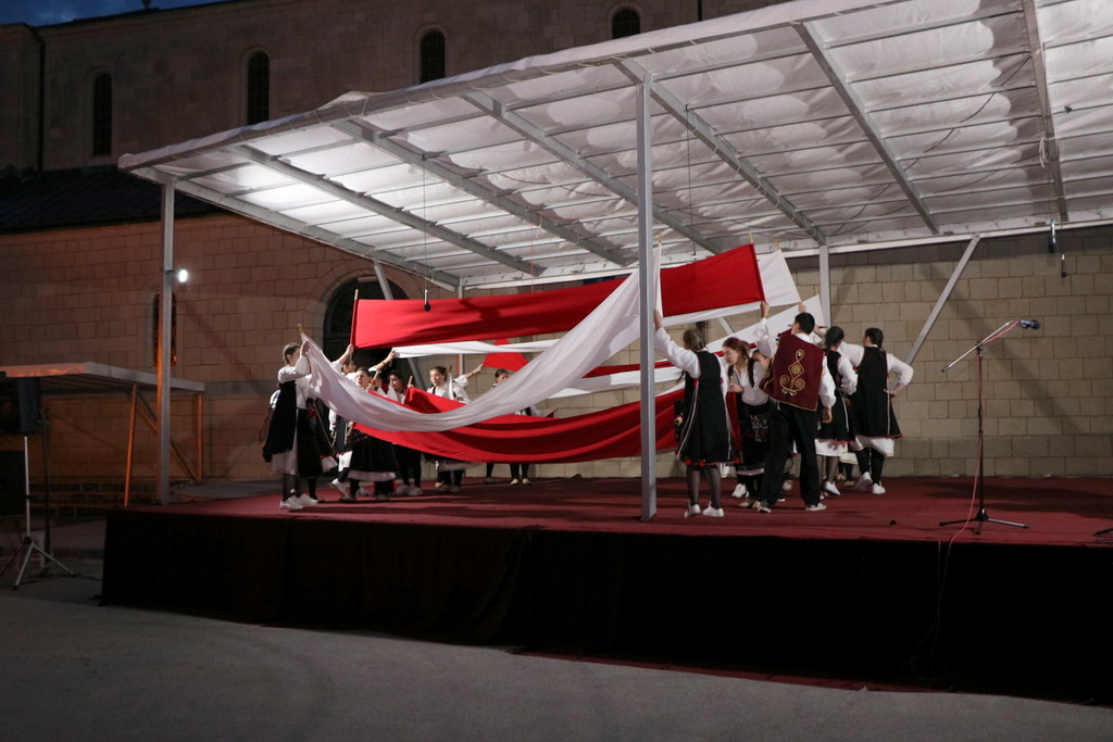 Na pozornici ispred tomislavgradske spomen-bazilike večeras su nastupili članovi i članice HKUD Sarajlije, Tomislavgrad (društvo-domaćin), HKUD sv. Ante, Cim – Mostar, KUD Mokro, Široki Brijeg, HKUD Antas Mucić, Ljubuški, KUD Stari hrast 2000, Novi Travnik