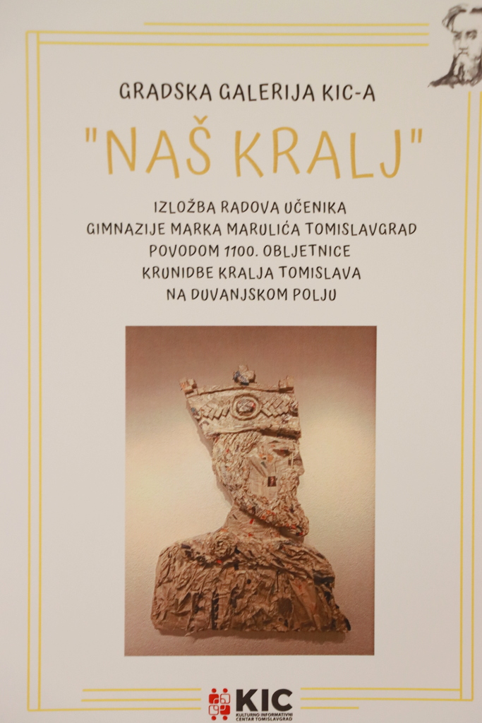 U jubilejskoj 2025. godini ili još bolje, o 1100. obljetnici krunidbe prvog hrvatskog kralja na Duvanjskom polju učenici i profesori (Lucijana Gudelj i Ilija Skočibušić) Gimnazija Marka Marulića iz Tomislavgrada priključili su se obilježavanju ovoga važnog događaja iz hrvatske povijesti i priredili su fenomenalnu izložbu pod naslovom „Naš kralj“ za koju je samo šteta što je zbog objektivnih razloga (pripreme i otvaranje iduće izložbe u petak, 11. travnja) trajala samo nekoliko dana i završava danas.