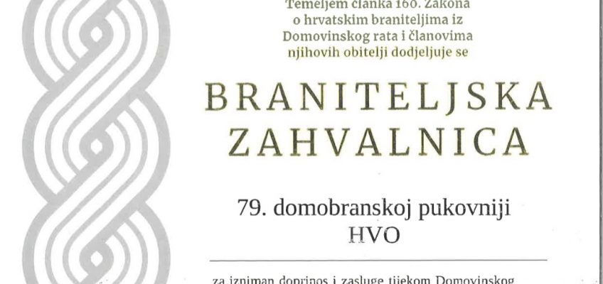 Za izniman doprinos i zasluge tijekom Domovinskoga rata, sudjelovanjem u operacijama Maestral i Južni potez braniteljska zahvalnica je dodijeljena i 79. domobranskoj pukovniji HVO-a, sljednici legendarne Brigade kralja Tomislava iz Tomislavgrada