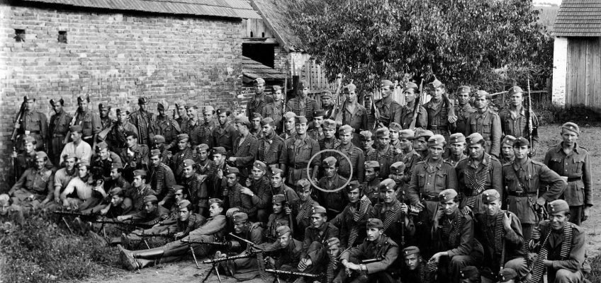Naime, na stranici 58. objavljena je fotografija osamdesetak pripadnika Poglavnikova tjelesnog zdruga, elitne postrojbe kojoj je između ostaloga (što i samo ime govori) bila fizička zaštita Ante Pavelića. Razumljivo, postrojba je dobro obučena i naoružana. Gdje je fotografija načinjena, ne zna se. No promatrajući ju, prema načinu građenja objekata koji se na slici vide, u našim, južnim krajevima, sigurno nije.