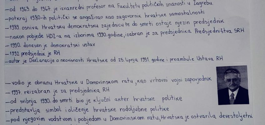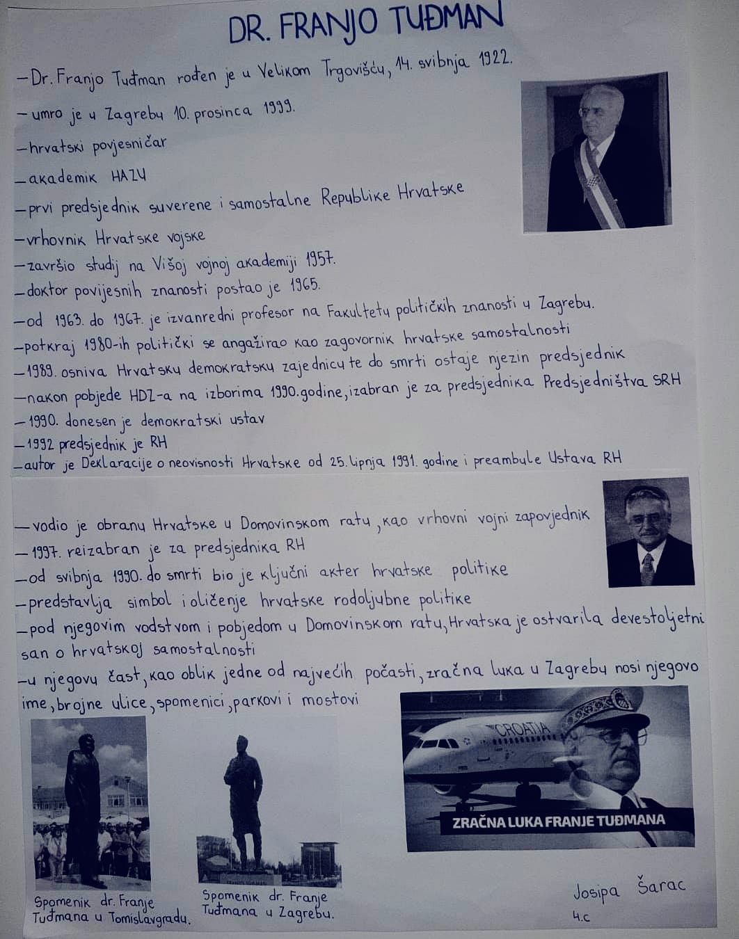 Prezentacija o prvom hrvatskom predsjedniku dr. Franji Tuđmanu koji je izradila Josipa Šarac, učenica 4. razreda OŠ Brestje, najstarija kći Antonelina i Kažimirova- Gagina.