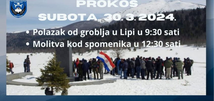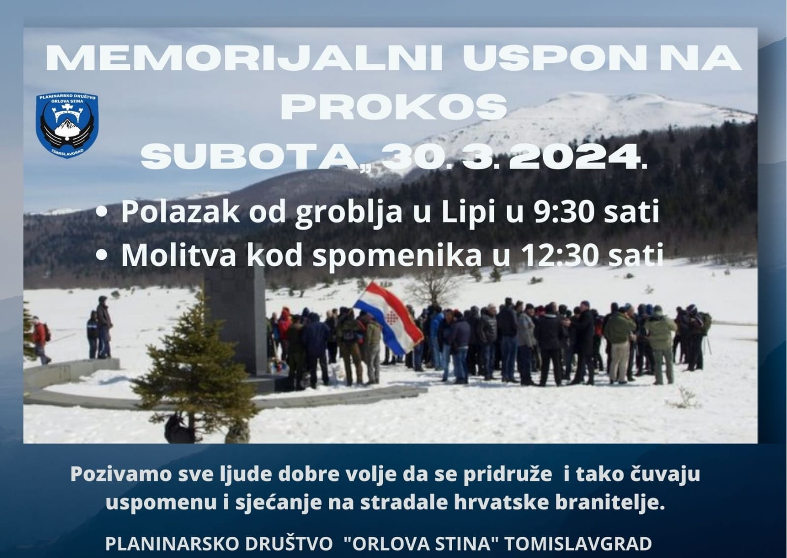Memorijalni uspon na Prokos, na Vran-planini, u spomen na hrvatske branitelje (četiri pripadnika Antiterorističke jedinice Lučko i jednog pripadnika Vojne policije HVO-a), koji su na ovome mjestu stradali u velikoj snježnoj oluji 30. ožujka 1995. godine, bit će održan u subotu, 30. ožujka 2024.