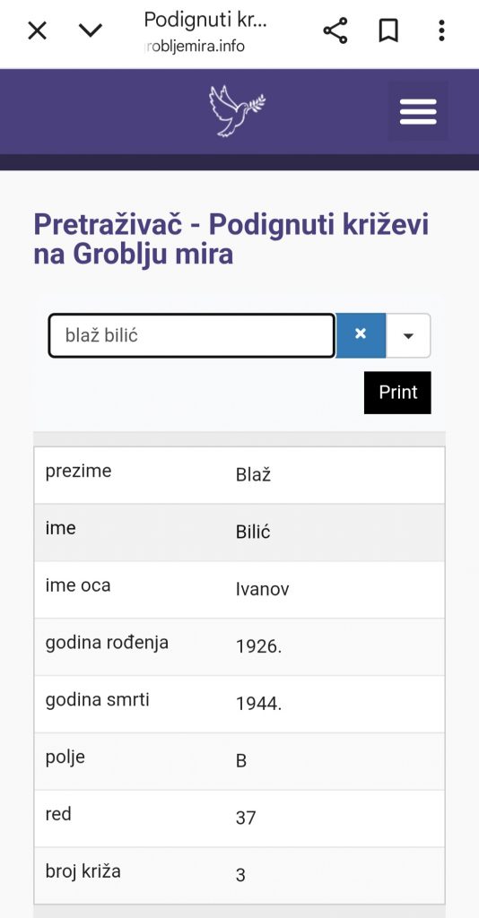 ➡️ Pozicije podignutih križeva možete pronaći upisivanjem imena i prezimena žrtve, klikom na poveznicu https://grobljemira.info/podignuti-krizevi-na-groblju-mira/