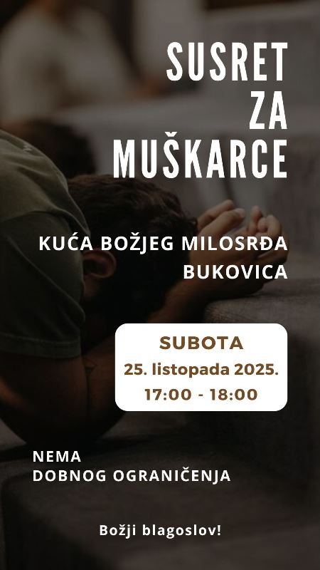 U subotu, 25. listopada 2025. godine, od 17 do 18 sati, u Kući Božjeg milosrđa u Bukovici održat će se Susret za muškarce.