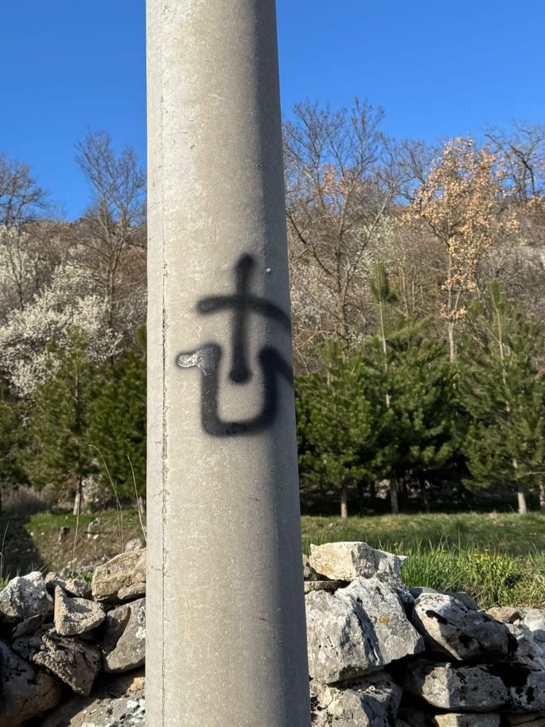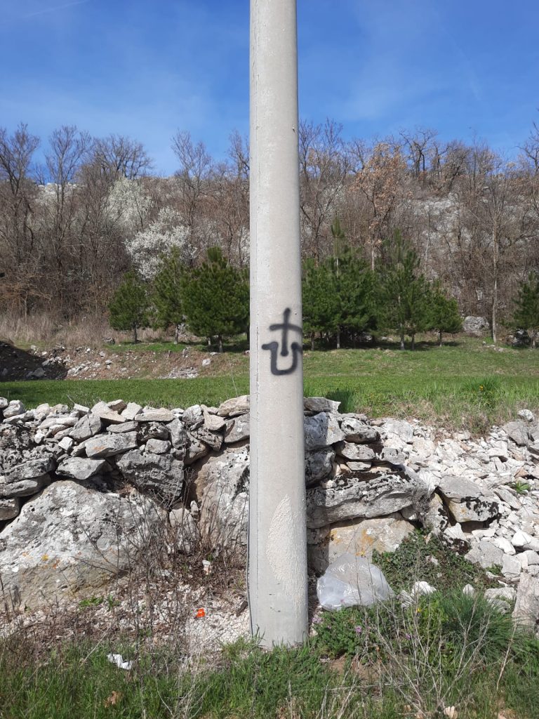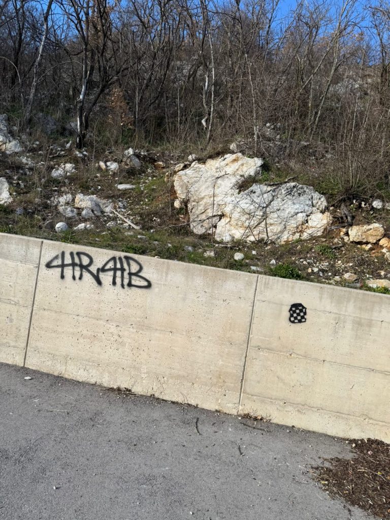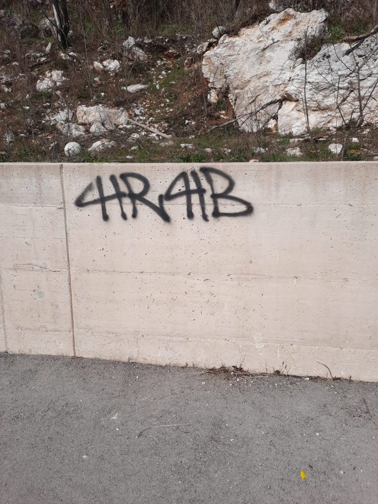 Sinoć u noći, nepoznata osoba ili više njih, išarale su zid ispred džamije u Mandinu Selu i kroz selo na elektro stupovima.