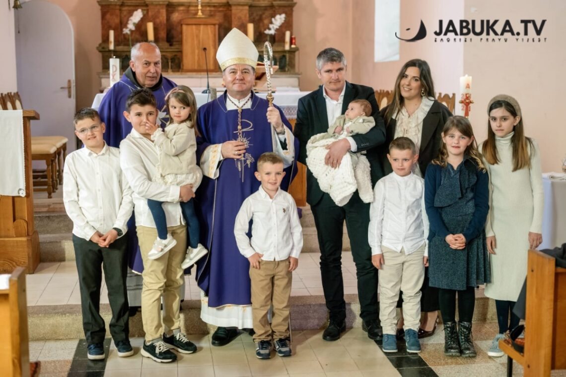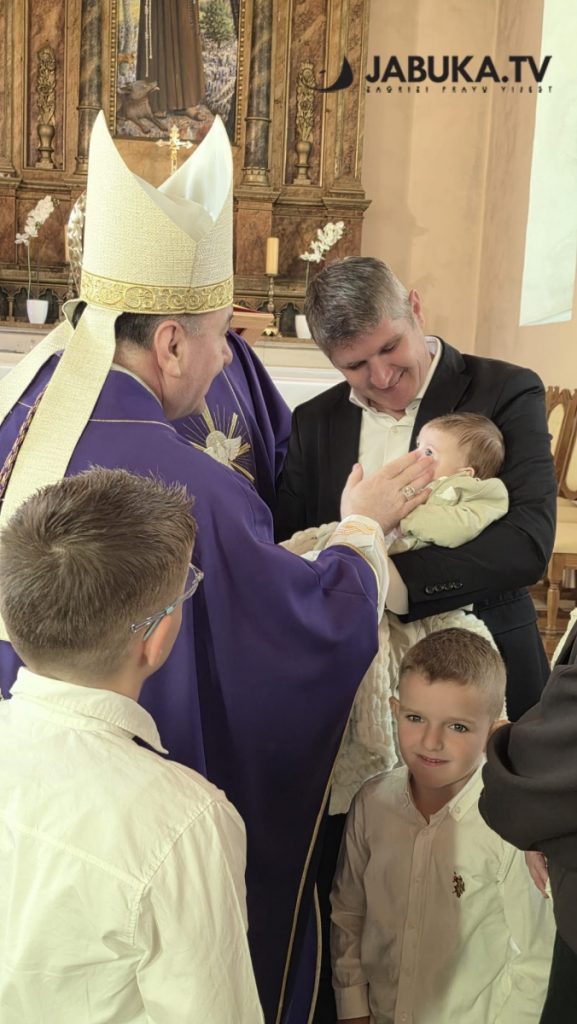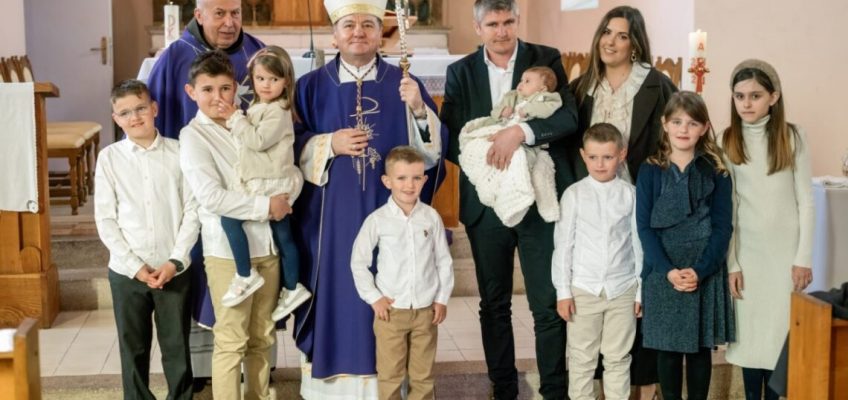 Biskup Petar Palić krstio je malenog Jonu, osmo dijete u obitelji Milice i Ante Muse, u župi sv. Franje u Rasnu.