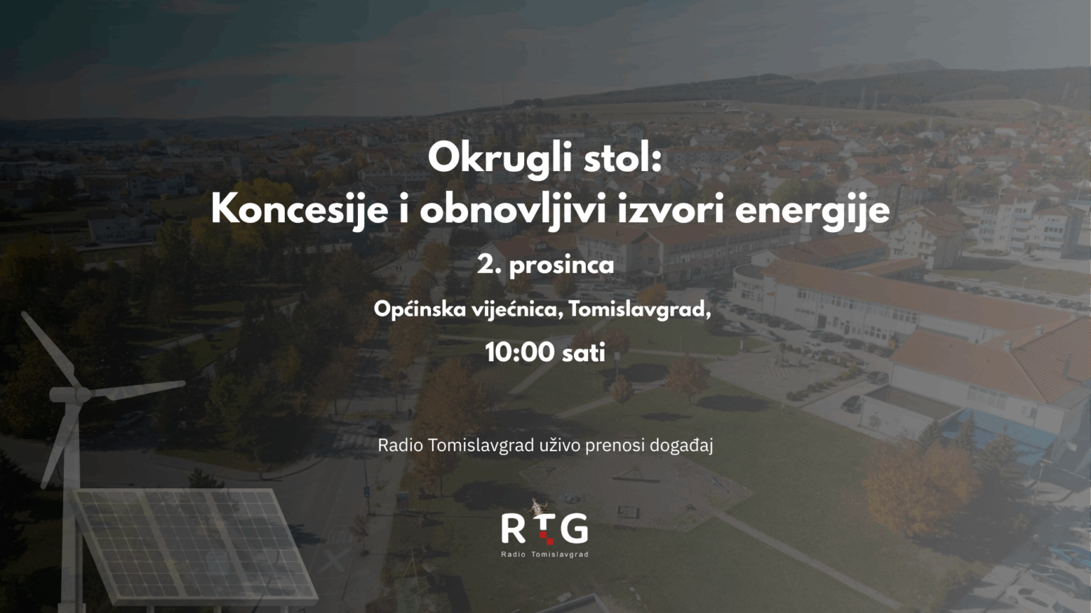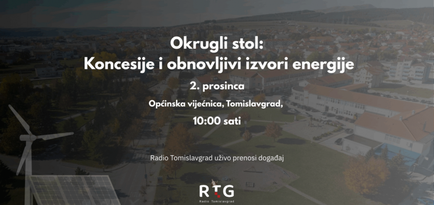 Radio Tomislavgrad organizira okrugli stol na temu “Koncesije i obnovljivi izvori energije”, koji će se održati u utorak, 2. prosinca, u općinskoj vijećnici u Tomislavgradu, s početkom u 10 sati.