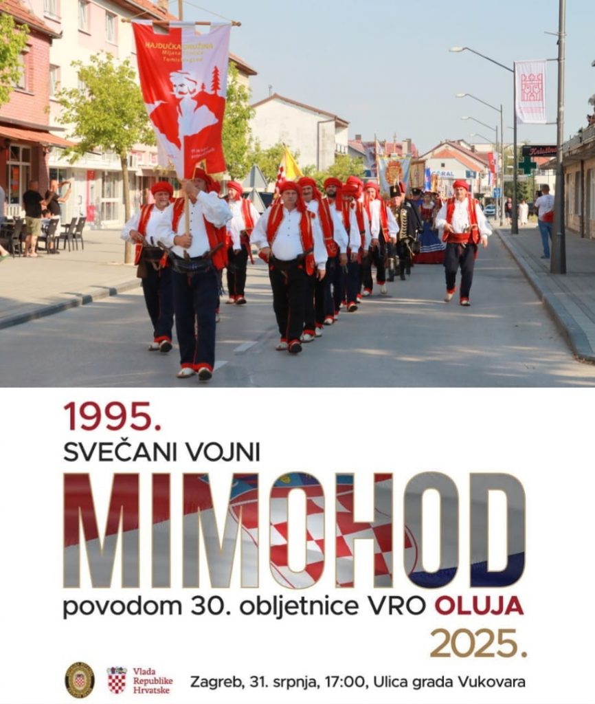 U povodu 30. obljetnice VRO Oluja, u Zagrebu se 31. srpnja održava svečani mimohod Oružanih snaga Republike Hrvatske u kojemu će također sudjelovati i povijesne postrojbe, članice Saveza povijesnih postrojbi Hrvatske vojske, čiji je ravnopravan član od 2020. godine i Hajdučka družina Mijata Tomića iz Tomislavgrada.