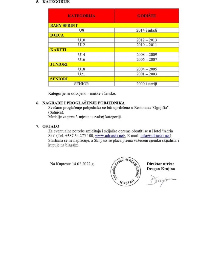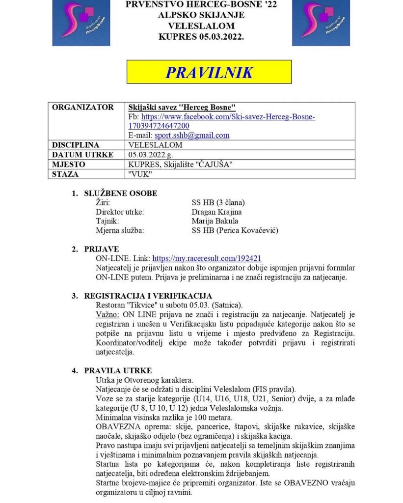Sa željom za ponovnom uspostavom sportske infrastrukture, natjecanja, ozivljavanje rada skijaskih klubova i omasovljenje skijaskog sporta, pozivamo Vas na Otvoreno prvenstvo Herceg-Bosne.
