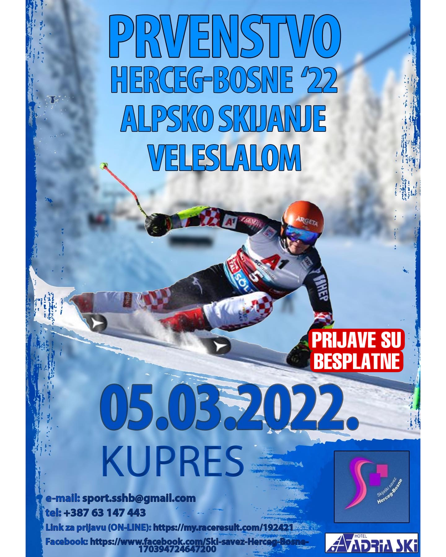 Prvenstvo će se održati 5. ožujka 2022. na Čajuši-Kupres u disciplini veleslalom.